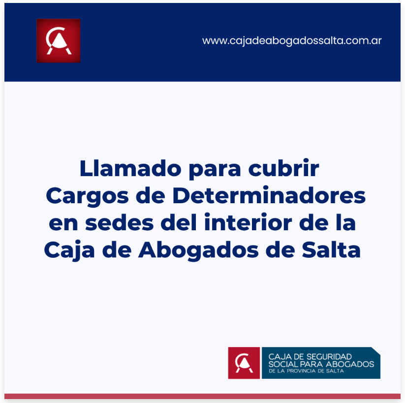 Llamado para cubrir el Cargo de Determinadores en sedes del interior de la Caja de Abogados de Salta