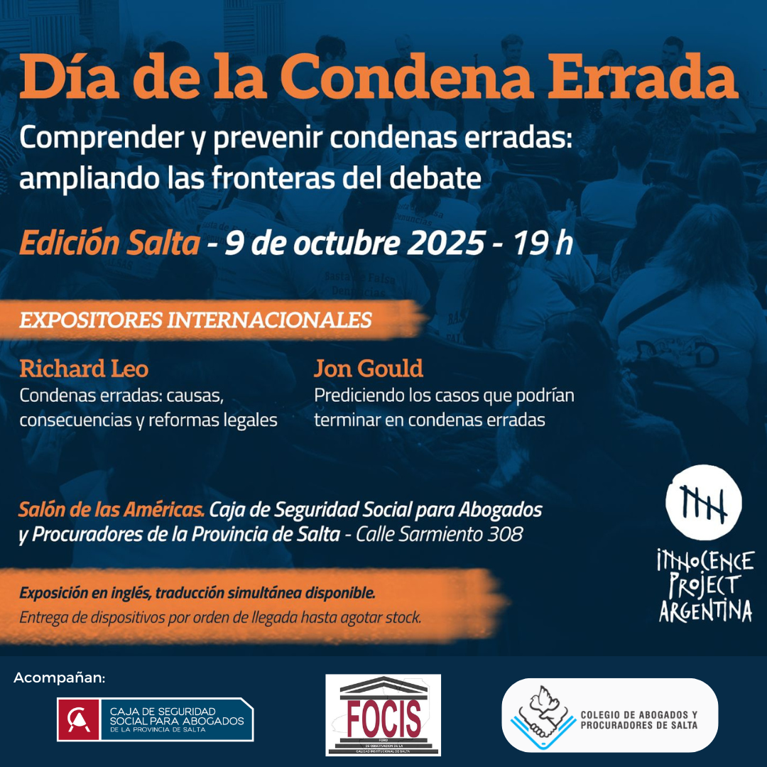 Invitamos a los interesados a sumarse a esta actividad gratuita. Este 9 de octubre se llevará adelante en la ciudad de Salta una jornada para comprender y prevenir condenas erradas. La cita es en el Salón las Américas de la Caja de Seguridad Social y Procuradores de la Provincia (Sarmiento N° 308) a las 19 […]
