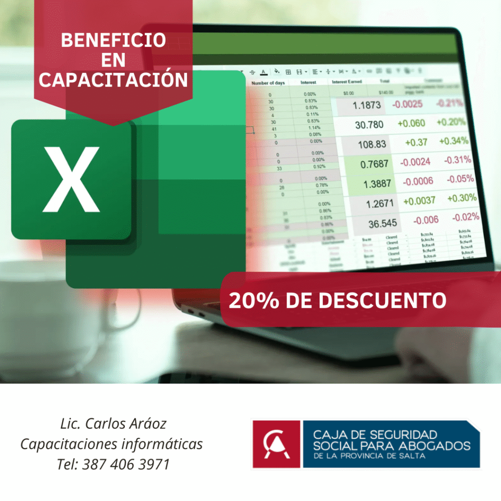 Desde la Caja de Seguridad Social para Abogados de la provincia de Salta firmamos un convenio de beneficios con en los cursos y capacitaciones dictados por el Lic. Carlos Aráoz, para el descuento del 20% en capacitaciones que ofrece.