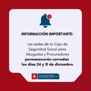 Durante los días 24 y 31 de diciembre todas las sedes de la Caja de Seguridad Social para Abogados de la provincia de Salta permanecerán