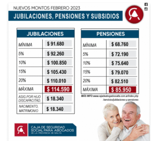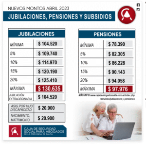 Actualizamos los nuevos montos de jubilaciones, pensiones y subsidios, viegentes a partir de abril de 2023.