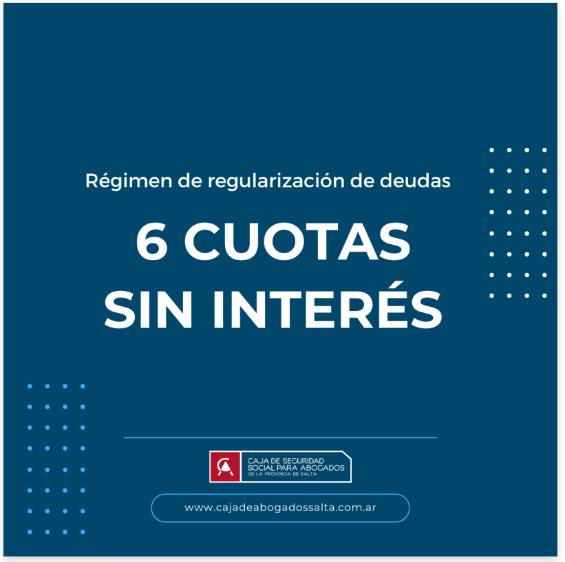 Comenzaron a regir las 6 cuotas sin interés para la regularización de deudas en la Caja de Seguridad Social para Abogados de la provincia de Salta. Las mismas se podrán abonar con tarjetas del Banco Hipotecario únicamente en nuestras sedes.