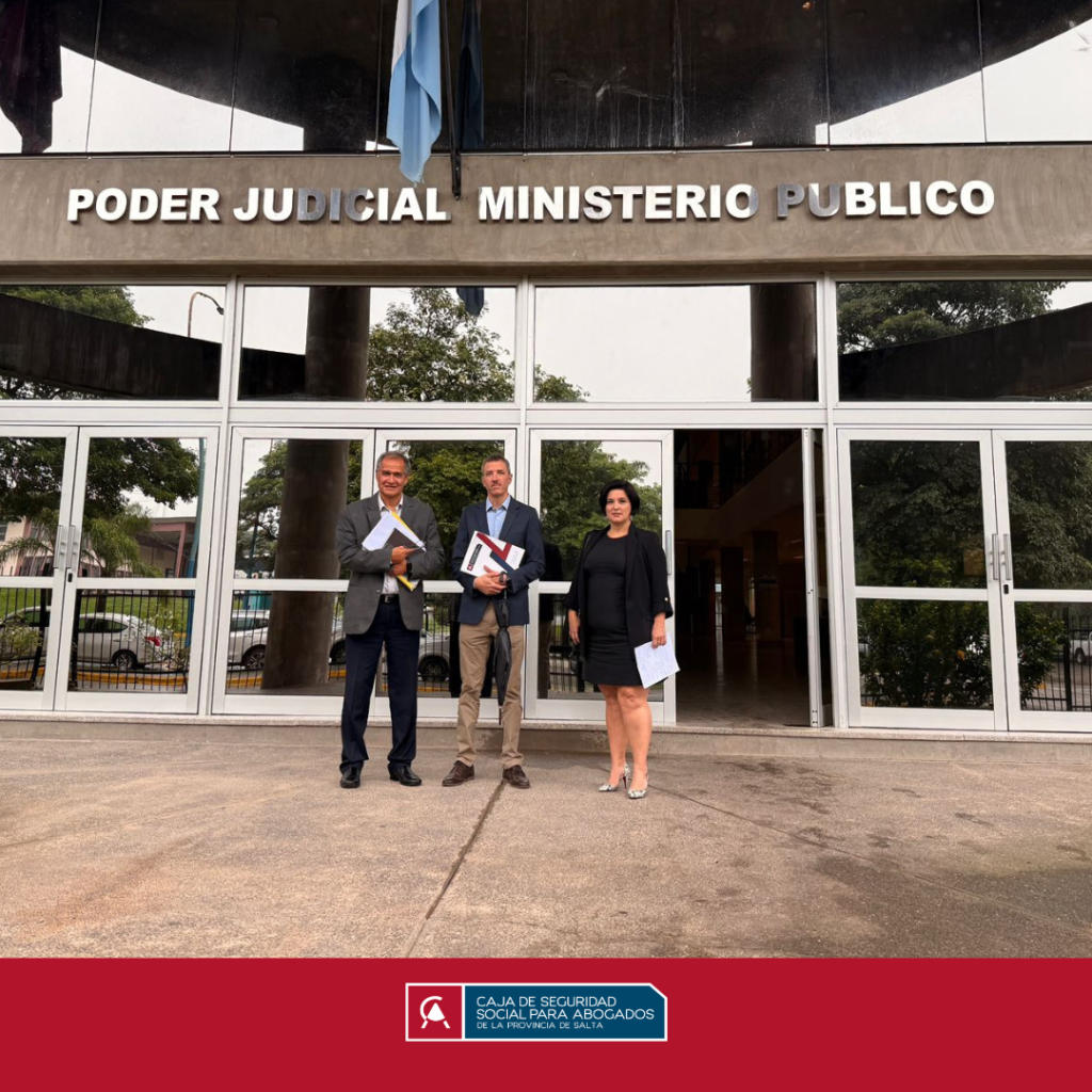 La presidenta de la Caja de Abogados, Dra. Julia Toyos, junto al secretario Administrativo de la Caja, Dr. Victorino Lérida, y el Coordinador del Interior, Dr. Pablo Calisaya, mantuvieron una reunión con jueces del Distrito Judicial del Sur – Circunscripción Metán.